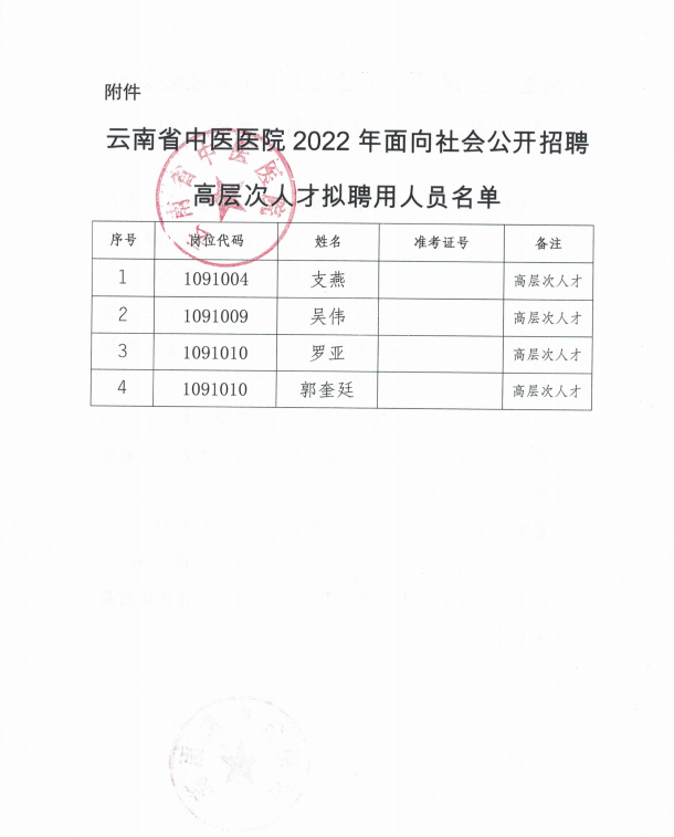 云南省中医医院关于2022年面向社会公开招聘高层次人才拟聘用人员的公示