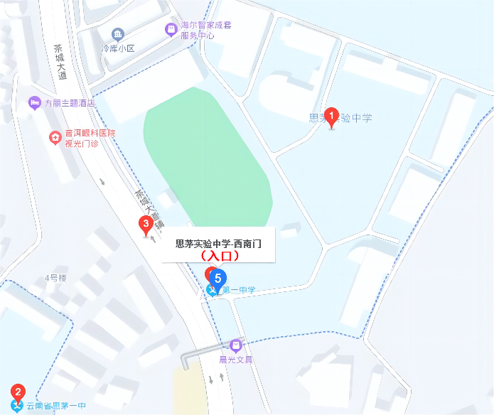(四)请报考人员在考试前一天熟悉考点地址和交通路线。普洱市思茅区各考点地址及位置示意图如下: