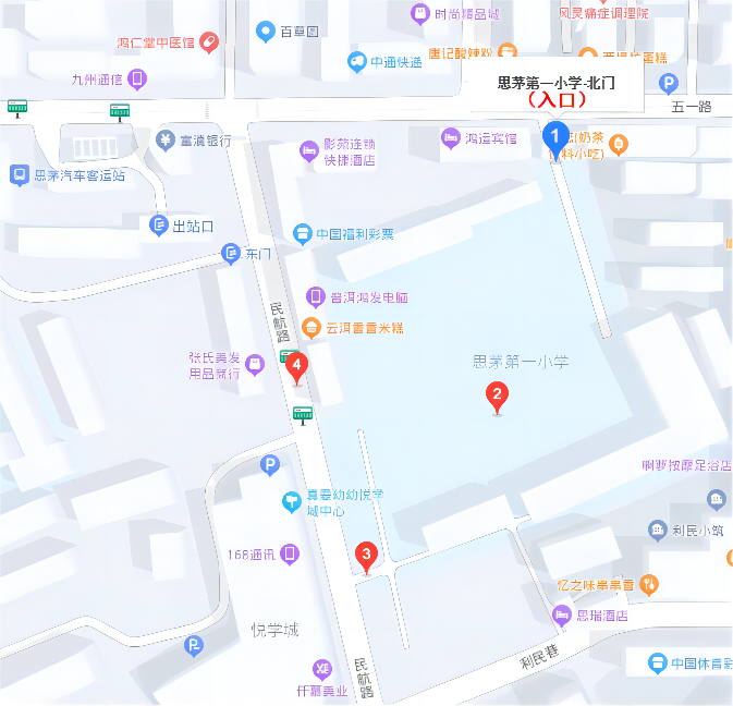 3.思茅第一小学,地址:普洱市思茅区五一路8号