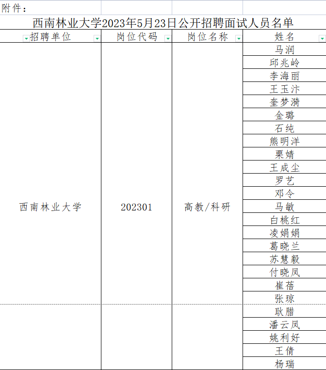 根据《云南省事业单位公开招聘工作人员办法》(云人社发〔2016〕182号)、《2023年西南林业大学公开招聘教学科研人员和心理健康教师公告》等有关规定及相关要求,经网络报名、资格审查、部分岗位已开展第一轮面试等工作,现将于5月23日开展第二轮面试工作,现将面试安排公告如下: