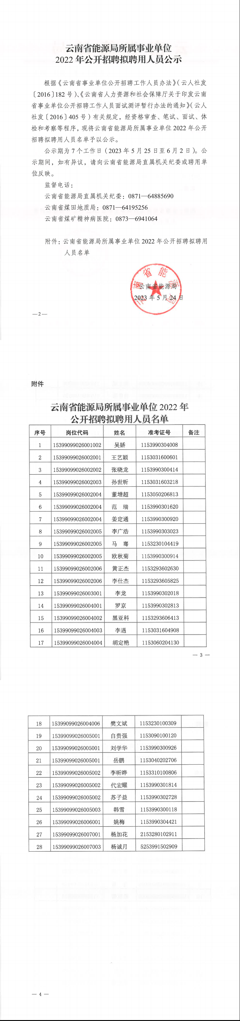 云南省能源局所属事业单位2022年公开招聘拟聘用人员公示