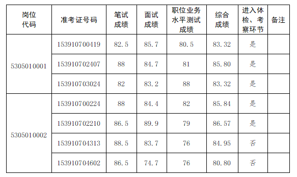 云南省人大常委会机关2023年公开遴选公务员面试(含职位业务水平测试)工作于2023年6月16日结束。根据《2023年云南省省级机关统一公开遴选公务员公告》相关要求,现将参加面试人员综合成绩(按准考证号码排序)以及体检和考察相关事宜通知如下: