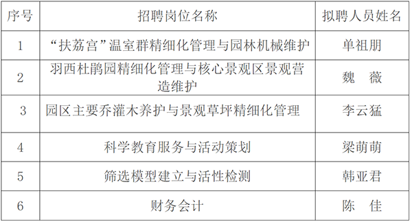 经研究所研究决定,2023年度昆明植物园、活性筛选平台、财务处有关岗位拟聘人员如下:
