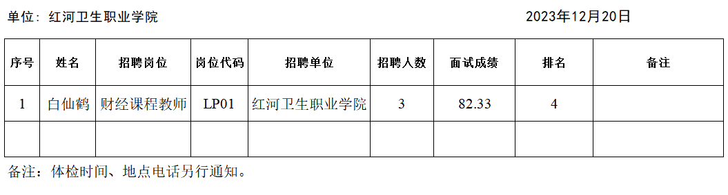 红河卫生职业学院2023年招聘编外工作人员体检递补人员名单
