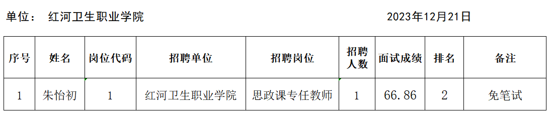 红河州教育体育局所属事业单位(红河卫生职业学院)2023年事业单位公开招聘急需紧缺人才体检递补人员名单