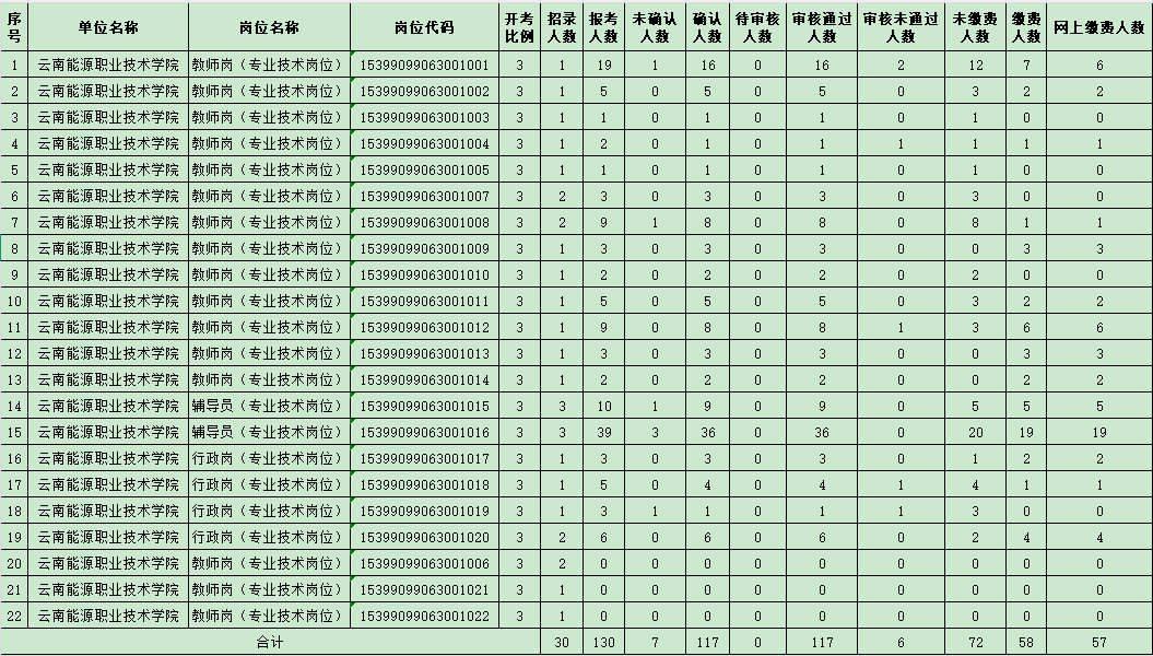 2025年云南能源职业技术学院第一批公开招聘人员报名人数(截止2025年2月20日18:00)