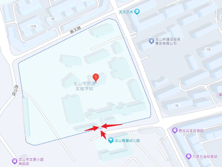 (七)文山市思源实验学校。考点地址:文山市思源路1号,乘坐1路公交车可达,地图链接:https://j.map.baidu.com/ff/cmPu,位置图如下: