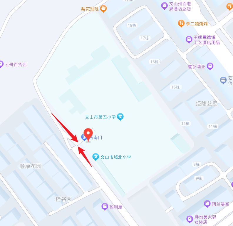 (十)文山市第五小学。考点地址:文山市卧龙街道军供路8号,乘坐5路、12路公交车可达,地图链接:https://j.map.baidu.com/0c/vE-,位置图如下: