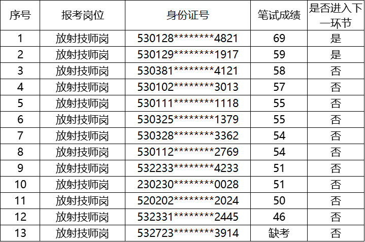 根据《云南省传染病医院2025年公开招聘非事业编制工作人员的公告》要求,现将本次招聘笔试成绩公示如下: