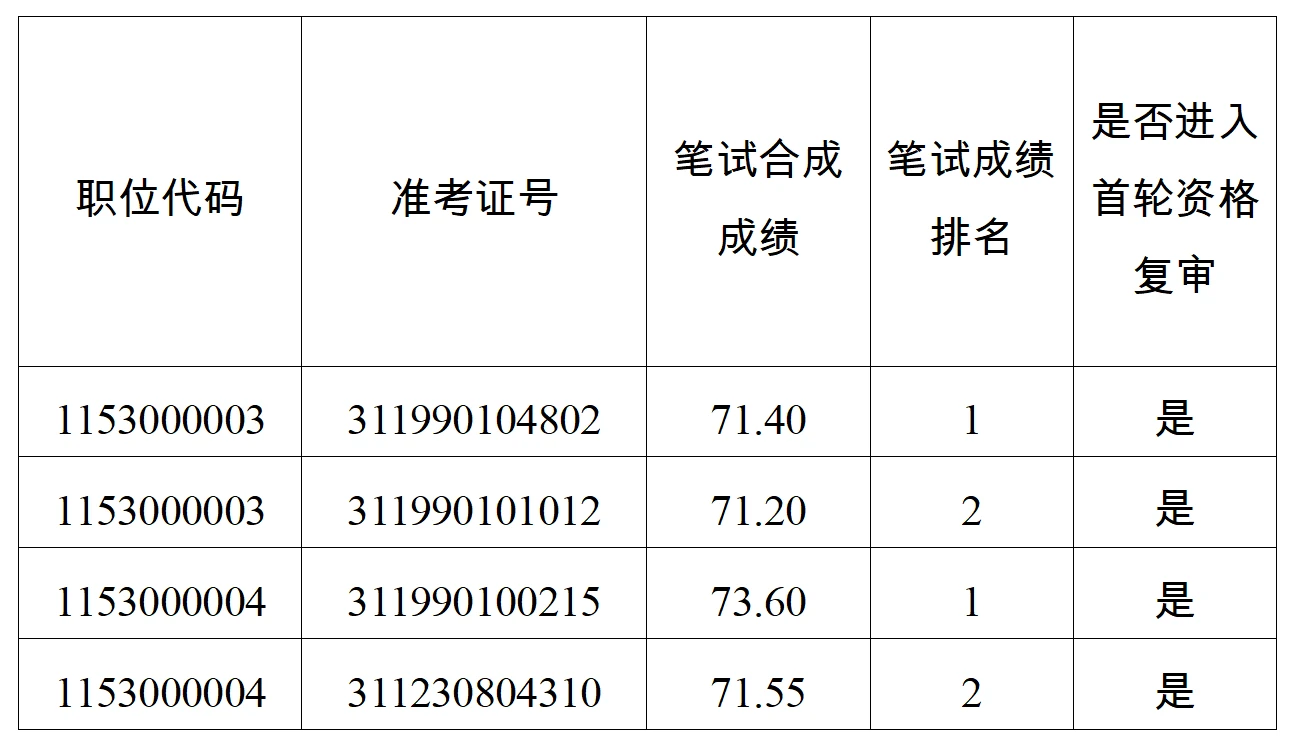 资格复审时出现因人员放弃或复审不合格而导致未达到面试比例的职位,以进入该环节人员须具备的条件,按笔试成绩由高到低顺序进行递补,递补2批次后仍未达到面试比例的职位按实际合格人数开展面试。面试及后续考录环节不再递补。