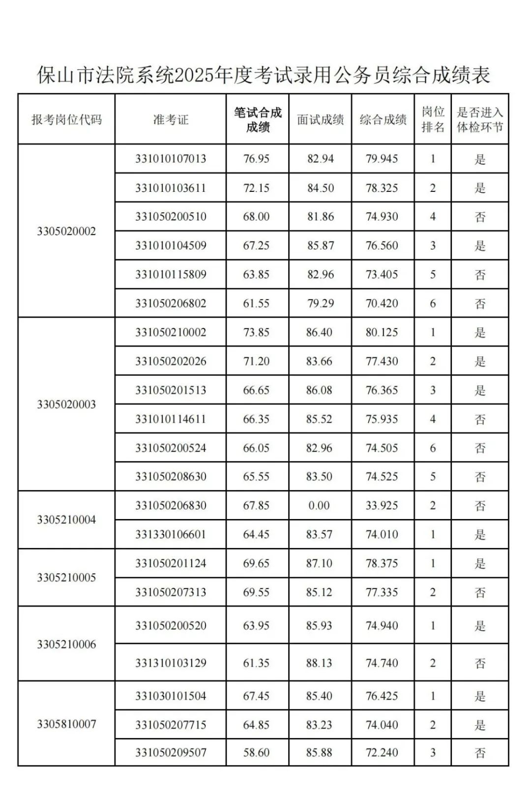 根据云南省2025年度考试录用公务员工作安排,笔试、面试工作已经结束,现将报考保山市法院系统公务员考生综合成绩及后续工作安排公告如下。