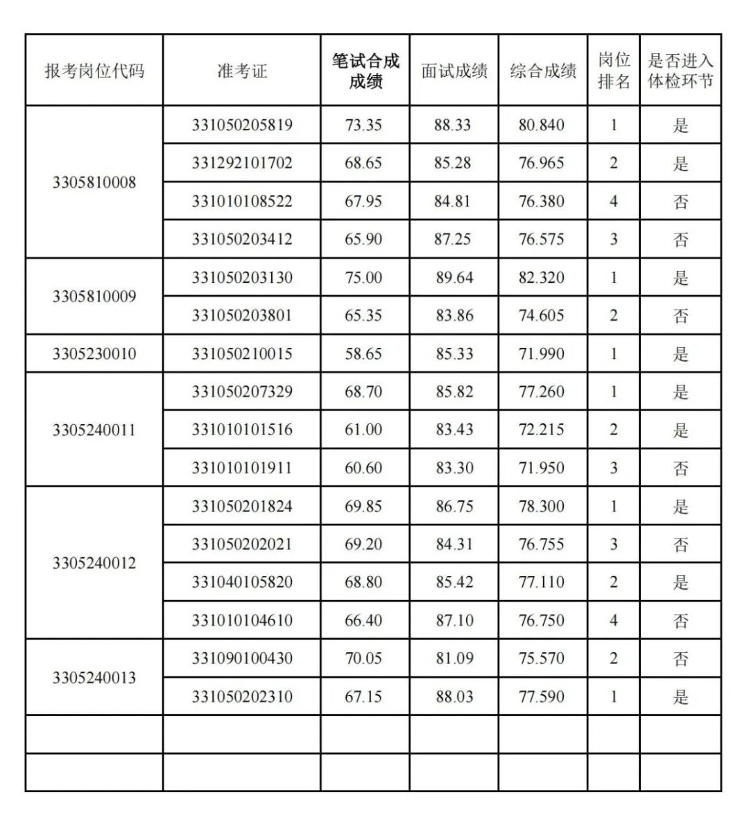 综合成绩按照笔试合成成绩、面试合成成绩各占50%的比例合成,笔试合成成绩、面试合成成绩四舍五入后均保留至小数点后2位,综合成绩四舍五入后保留至小数点后3位。具体综合成绩详见附件。