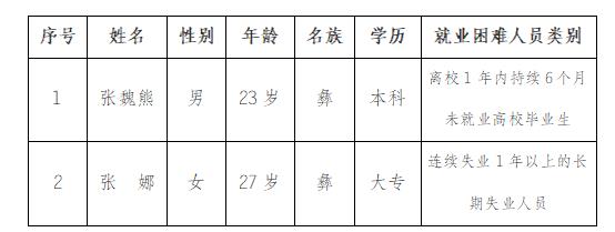 公示时间从2025年5月15日起至2025年5月21日止(节假日除外),公示期间,如有异议,请向漾濞彝族自治县公共就业和人才服务中心反映,联系电话:漾濞彝族自治县公共就业和人才服务中心(0872-7524462)