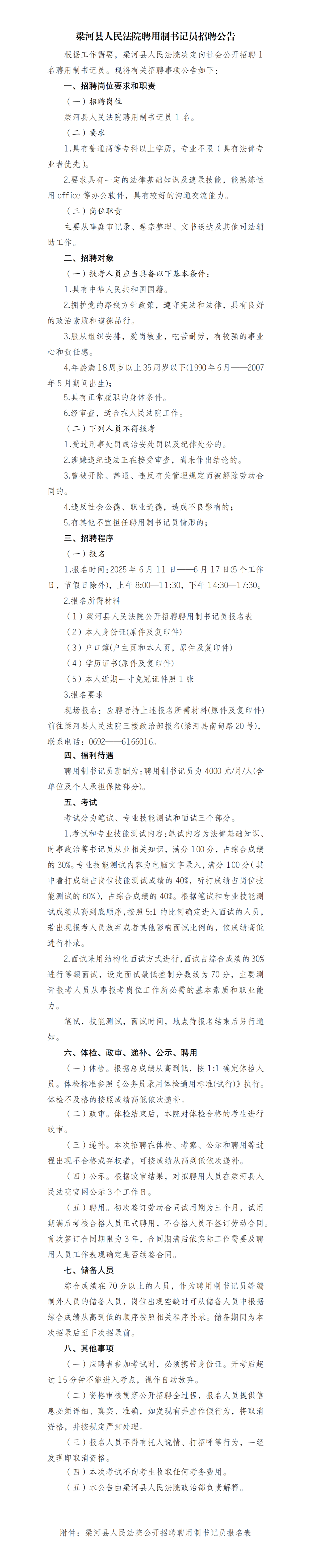 已结束 【聘用制】梁河县人民法院聘用制书记员招聘公告(招若干人,06月10日~06月25日报名)