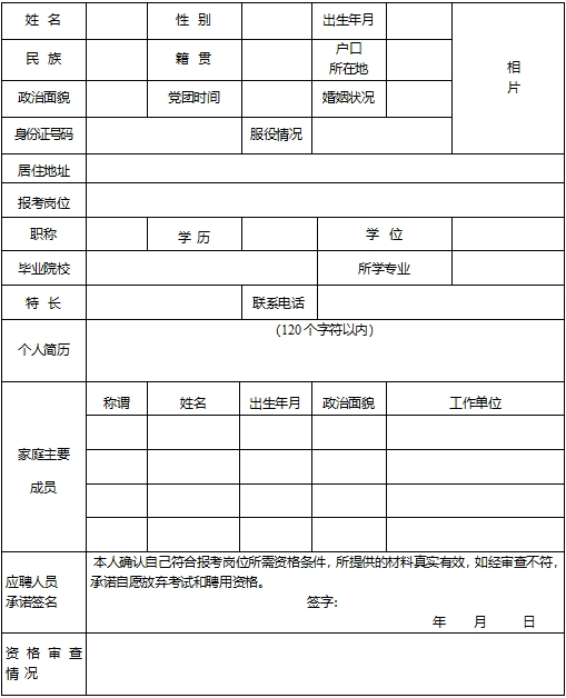 富民县消防救援大队招聘专职消防员报名申请表