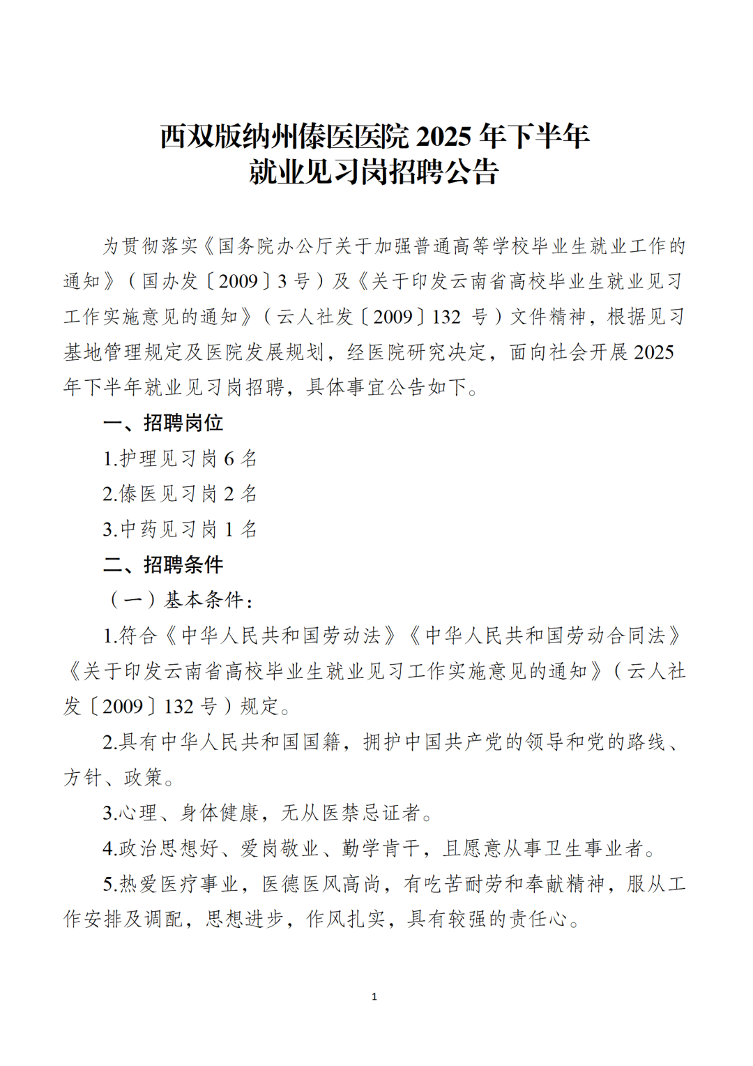 标签: 西双版纳州傣医医院 傣医医院招聘 2025年下半年见习岗 就业见习 傣医医院招聘公告