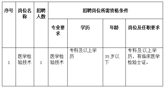 本次招聘医学检验技术岗位,共计招聘1人。具体岗位及人数详见招聘计划表。