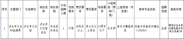 为进一步加强泸水市文化馆人才队伍建设,优化专业技术人员队伍结构,满足文旅工作需求,泸水市文化和旅游局计划面向全国引进作曲与作曲技术理论工作人员1名,现将有关事项公告如下:
