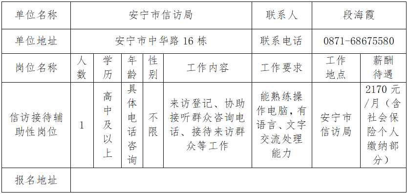 根据《云南省人力资源和社会保障厅 云南省财政厅关于印发云南省城镇公益性岗位管理暂行规定的通知》(云人社通〔2024〕25号)精神,按照公开、公平、公正的原则,为做好安宁市城镇公益性岗位开发管理工作,现将2026年公益性岗位招聘第一期信息公告如下: