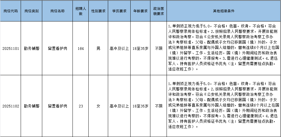 二、招聘人数及岗位 本次共招聘187人,具体招聘计划详见《玉溪市公安局2025年第四季度公开招聘警务辅助人员招聘简章》(以下简称《招聘简章》,见附件1)。