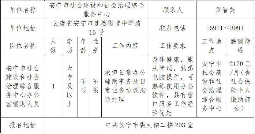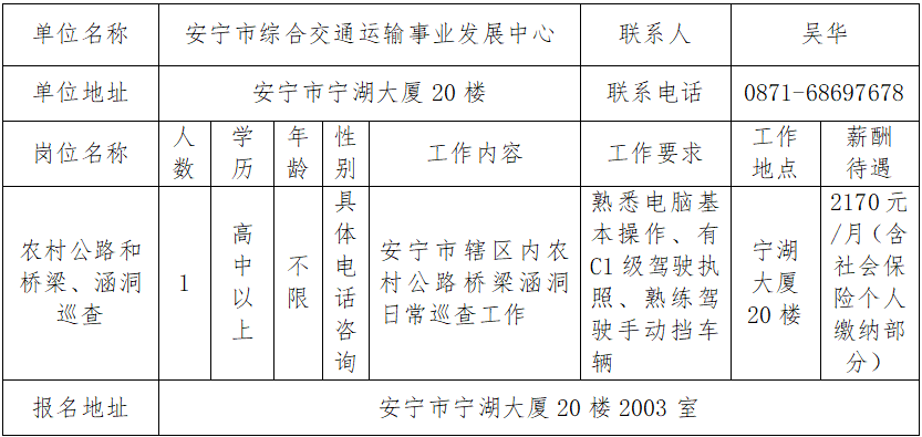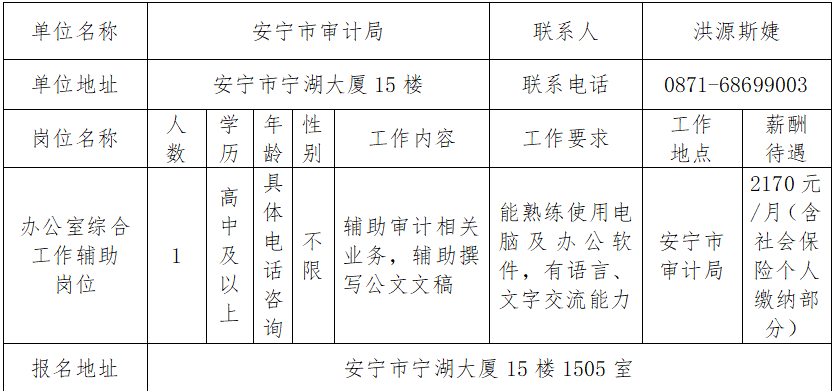 注:应招聘单位要求,报名安宁市审计局岗位人员须在报名时现场提交纸质版个人简历。