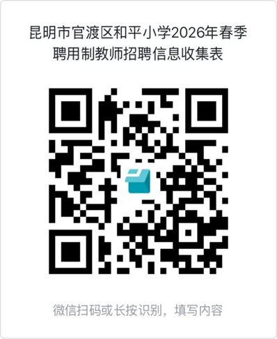 (二)报名方式:本次招聘报名采取网络报名的方式进行,应聘人员须在规定时间内扫描公告末尾二维码进行网络报名,按《昆明市官渡区和平小学2026年春季聘用制教师公开招聘公告》报名要求填写各项信息。网络报名时间截至3月1日下午18:00。