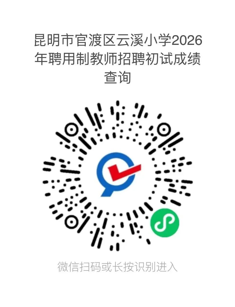 (4)初试成绩查询:2026年3月31日15:00-19:00,可通过微信扫码或长按识别下方二维码,输入姓名及身份证号查询,各岗位按比例1:3(招聘人数×3)确定进入资格复审及复试人员(末位同分者一并进入)。