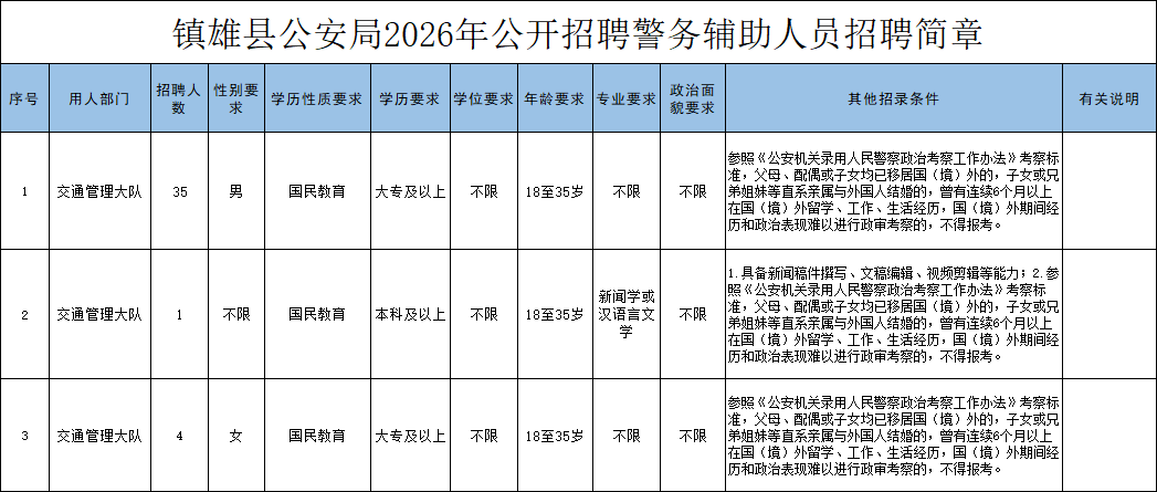 附件:《镇雄县公安局2026年公开招聘警务辅助人员招聘简章》